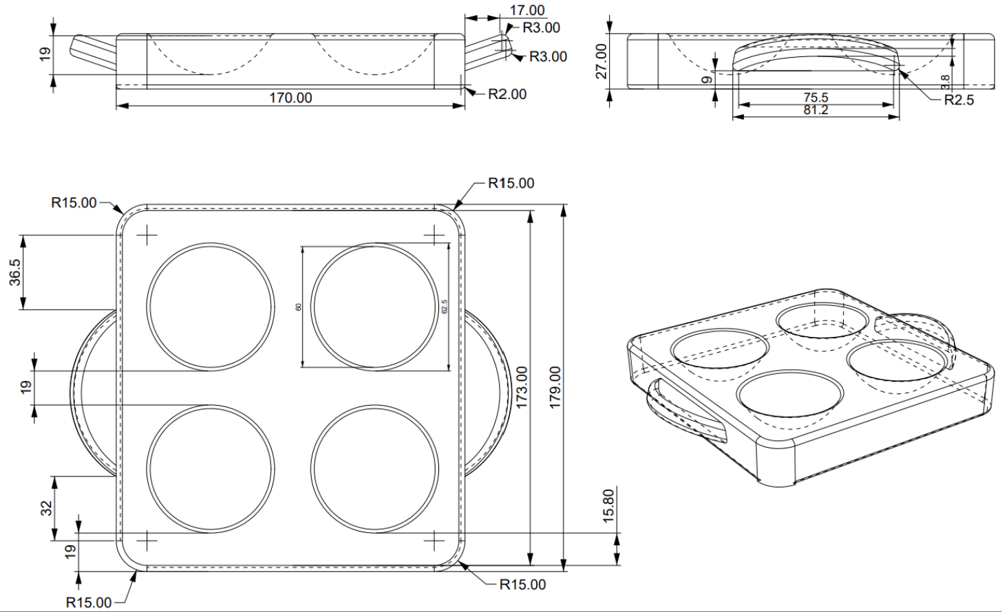 Les plateaux comportent des logements concaves correspondant à la géométrie des verres, assurant guidage latéral et auto-centrage pendant le service.