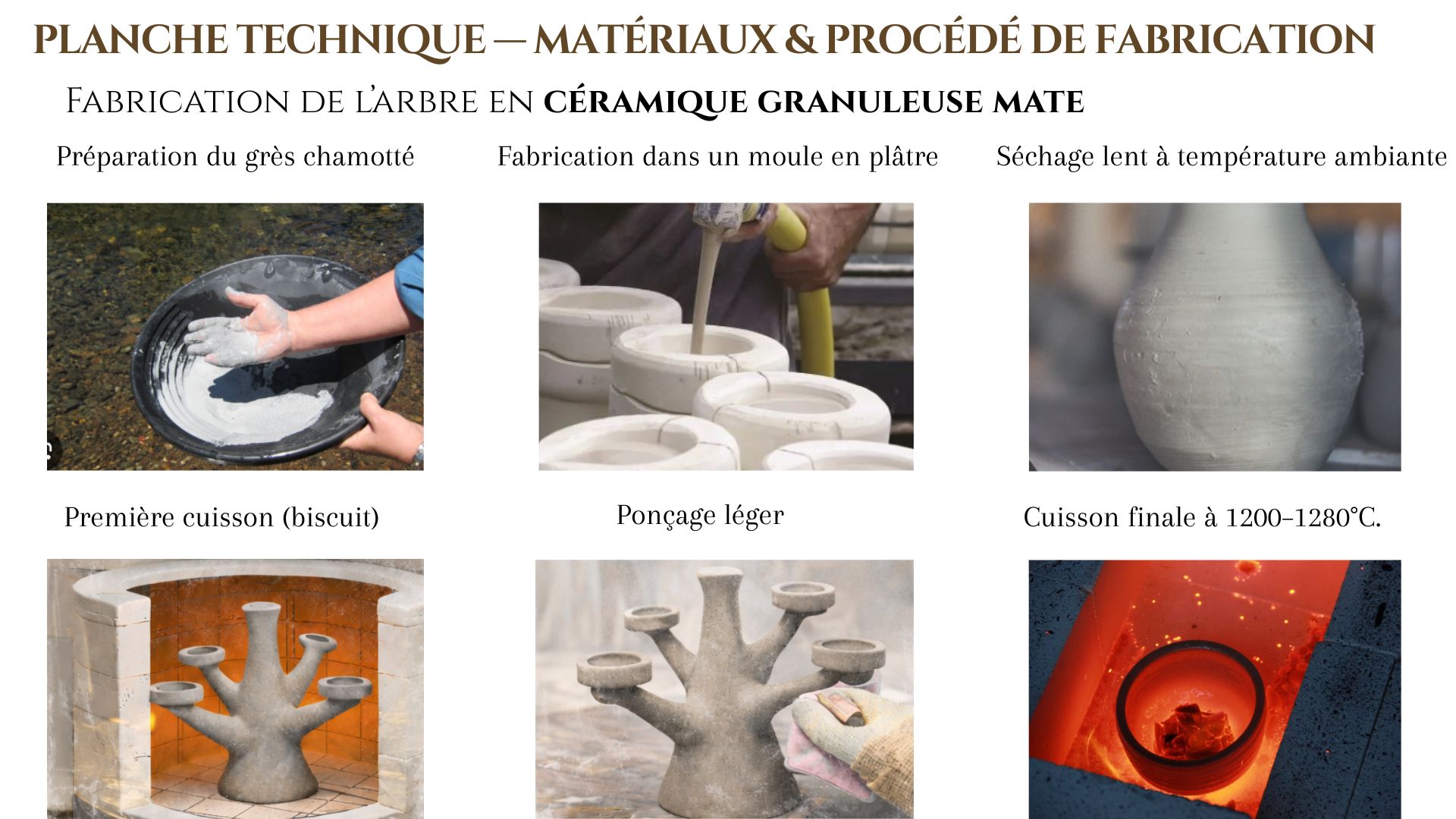 La structure associe une céramique mate à texture minérale et un verre délicatement translucide. Ce contraste met en valeur la matière, la lumière et le volume. L’ensemble crée un équilibre subtil entre fonctionnalité et expression sculpturale.