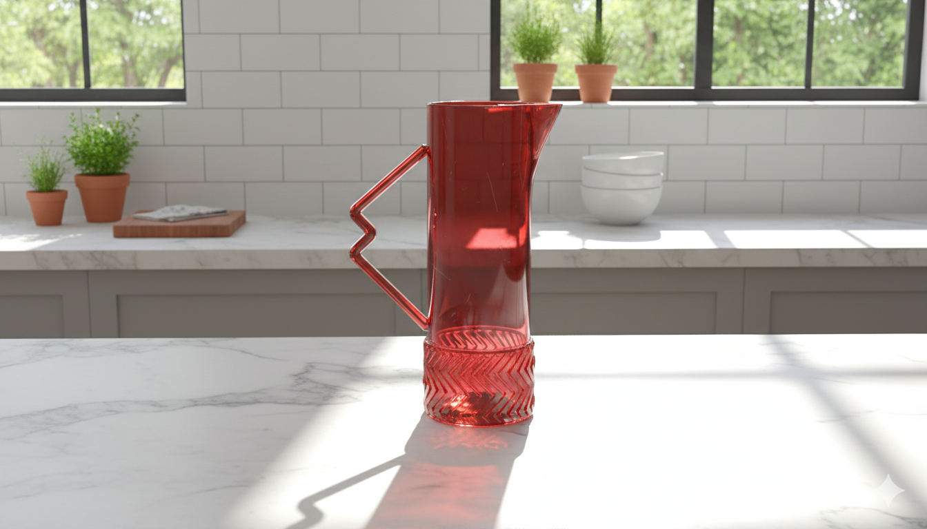 Avec Chevron Pitcher, la carafe devient un véritable objet de design. Inspirée par l’univers stylistique de Kartell, elle joue avec la transparence, la couleur et la géométrie pour attirer le regard. Sa signature : une anse intégrée au dessin, à la fois graphique et fonctionnelle, qui transforme le geste de service en une expérience plus intuitive, affirmée et pratique. Le motif chevron, texturé à la base du produit, apporte du rythme à la silhouette, assoie l’impression de qualité, en renforçant l’identité visuelle de la carafe. Pour obtenir un jeu de transparence et des textures complexes de manière monobloc, l’objet a été entièrement pensé pour une fabrication par injection thermoplastique haute pression. Pensée pour le quotidien mais dessinée comme un objet manifeste, Chevron Pitcher promet une nouvelle manière de servir : plus libre, plus expressive, plus design.