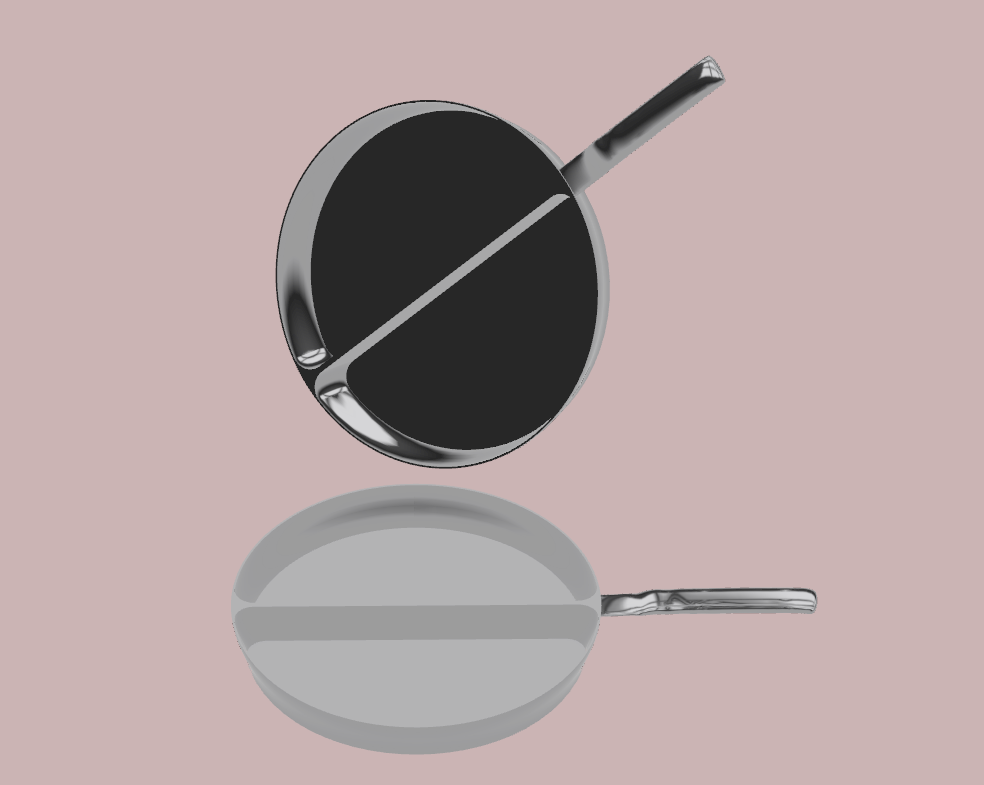 Ce modèle a été développé sous Rhino 3D en utilisant une approche de modélisation surfacique avancée, garantissant une continuité de courbure parfaite entre le corps de la poêle et le manche ergonomique.