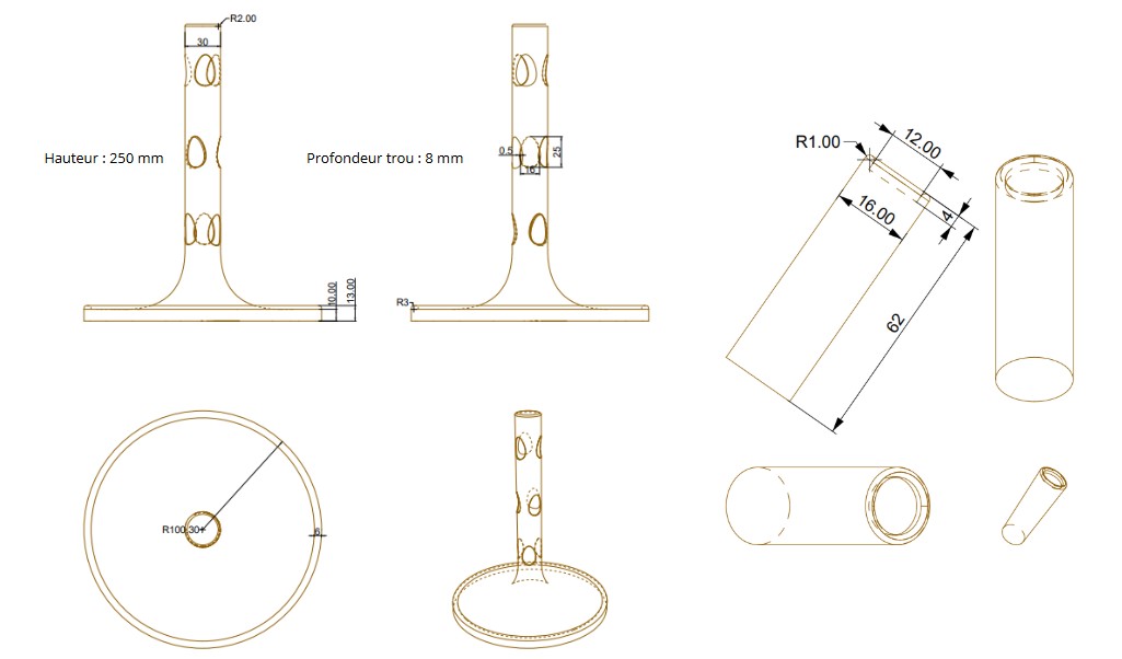 L’arbre à pauses est un arbre à dessous de verre, en hêtre. La conception de cet arbre comprend 9 dessous de verre magnétiques.