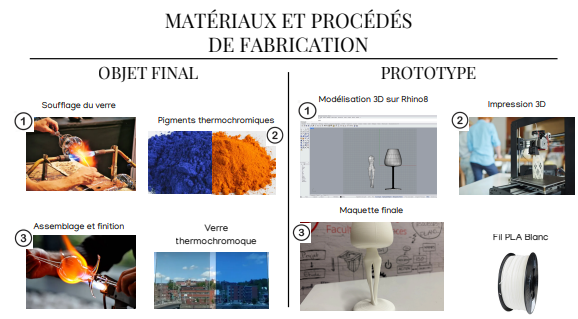 Le torse de la sculpture change de couleur selon la température de la boisson grâce à des pigments thermochromiques. Quand le liquide est froid, il devient bleu. Lorsqu’il se réchauffe, il adopte une teinte chaude. Ainsi, l’utilisateur perçoit immédiatement la température sans toucher le verre. Ce détail rend SEN interactif et vivant.